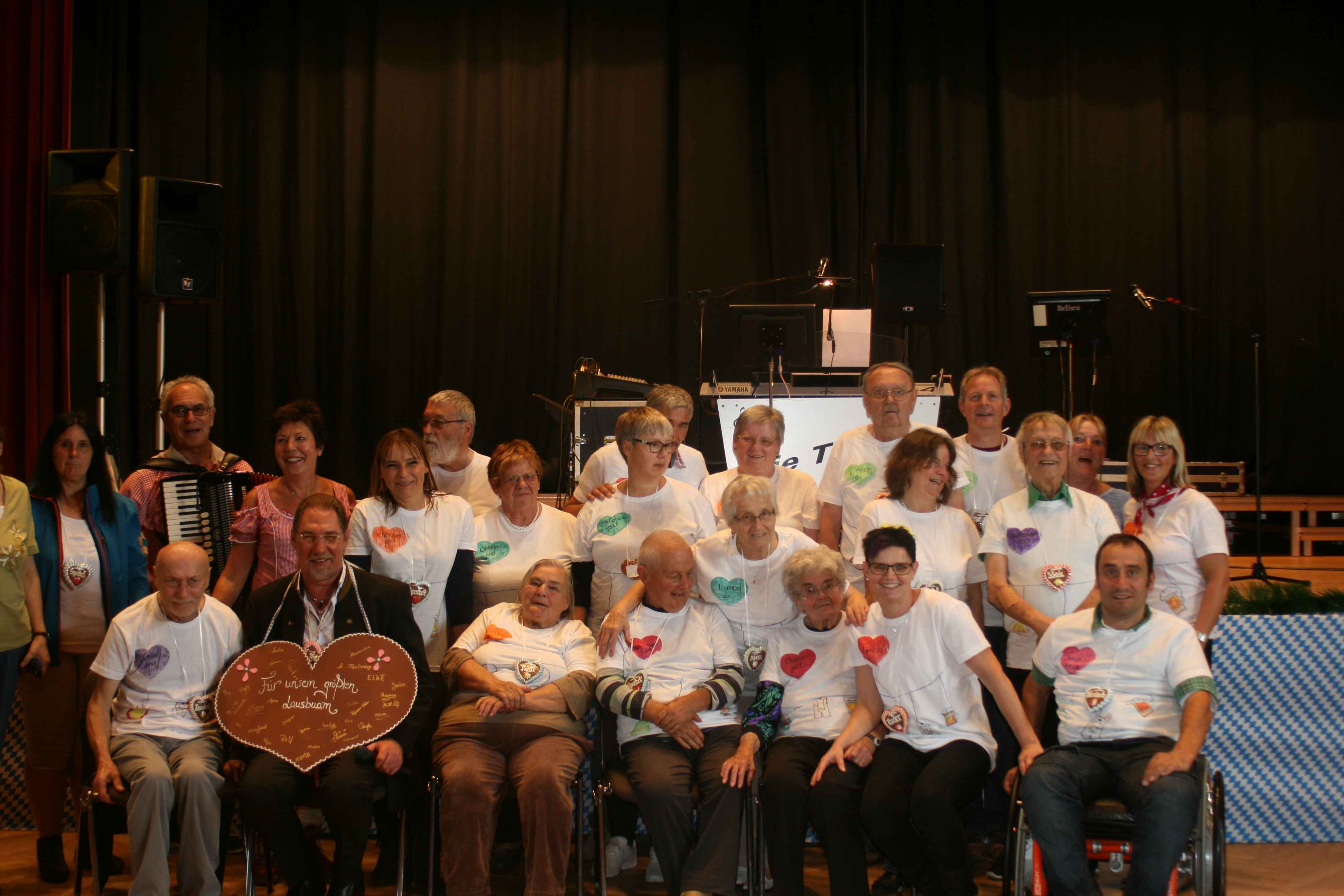 Der große Saal des Kurzentrums füllte sich bereits um 13:15 Uhr und um 14:00 Uhr, zu Beginn der Veranstaltung, waren rund 200 Senioren in Feierlaune zum Oktoberfest gekommen. Zünftig eröffnet wurde der Nachmittag von Maggy und Charly Braig, die auch in diesem Jahr wieder ehrenamtlich für den guten Ton sorgten. Fesch in Tracht, wie auch viele der Besucher, ging es gleich im Stimmungsbarometer bergauf und die ersten Pärchen schwangen das Tanzbein. Es wurde geschunkelt und gesungen, bis ein Feuerwerk an Witzen die Lachmuskeln strapazierte. Die Bad Buchauer Originale, Klara Mattmann und Rose Knoll, erzählten aus ihrem großen Repertoire die besten Kracher. Die Trollys riefen dann auf zur größten Seniorenpolonaise Oberschwabens auf. Tatsächlich, der gesamte Saal setze sich in Bewegung, gleich ob mit Rollator , oder Rollstuhl, gehalten oder geführt, alle kamen sie an der Bühne vorbei um sich ein Herz abzuholen. Lausbua, Prinzessin, Schatzi, Liebling, trugen die Herzen zur Aufschrift und wurden gespendet von Wirtschaftleiter Ulrich Blöß. Jeder hatte nun bei der Rückkehr auf seinen Platz zwei Herzen, ein großes in der Brust und ein kleines vom stimmungsvollen Nachmittag in Kurzentrum. Etwas anders geplant hatte Michael Wissussek den Fortlauf des Programmes, als er plötzlich in seiner Moderation unterbrochen wurde, mit dem Hinweis die Mitarbeiter und teils Gäste der Demenzpflege Riedlingen hätten eine Überraschung für ihn. Aufgefallen ist die große Tischgruppe bereits, denn sie trugen alle extra gemalte Oktoberfest T - Shirts mit der Aufschrift: „ gemeinsam gegen einsam „. Als sie sich dann zum Chor formierten und begannen zu singen, war Wissussek etwas erstaunt. Nicht genug, trug ein Tagesgast noch ein schönes Herbstgedicht vor und dem Chef der Demenzpflege wurde von seinen Mitarbeitern ein großes Herz überreicht. Unterschrieben von allen Mitarbeitern sollte es ein großes Dankeschön für sein Engagement sein. Noch einmal setzte sich der Saal in Bewegung, denn jetzt galt es die schönsten Trachten zu prämieren. Von der Uttenweiler Betreuungsgruppe, den Wohngemeinschaften aus Bad Schussenried, den Bewohner des Marienheims, vom Haus mit Herz setze sich wieder alles in Bewegung, um beim großen Finale mit dabei zu sein. Josef Martin, Vorstand der Seniorengenossenschaft, bedankte sich ebenfalls und war selbst mitgerissen von der guten Oktoberfeststimmung im großen Kursaal, den Geschäftsführer Walter Hummler, zur Durchführung solcher sozialer Veranstaltung zur Verfügung stellt. Sehr gelungen freute sich auch Stadtrat Klaus Schultheis, der die Veranstaltung ebenfalls besuchte. Die Erinnerung und Abwechslung bleibt sicherlich noch lange Zeit in den Herzen der Gäste, Betreuer und Helfern des Frauenbundes Bad Buchau. Wissussek beendete die Veranstaltung mit der Aussicht auf ein Mai- und Oktoberfest im Jahr 2017.